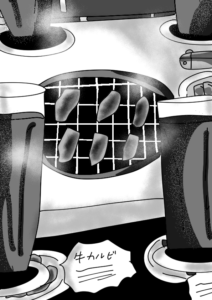 「乾杯~!!」探偵部全員と翔の父と古畑菜刑事、顧問の羽田先生で大きいジョッキみたいなグラスを合わせて乾杯した。楽しく話をして団らんしながら肉を焼いて食べた。