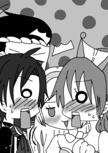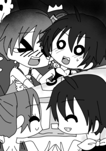 「ノエル君、王子様みた~い!!素敵!!」そして二人は中等部3年1組の模擬店、お化け屋敷に着いた。当然走った後なので、ぜーぜーと息を切らしている。