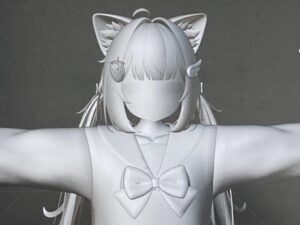 blenderが完成したら、UmityにFBXデータを持っていき、最後にシフォンちゃん(https://booth.pm/ja/items/5354471)の髪の毛に位置を調整して、影などマテリアルの設定をし、頭に追従する設定をして完成です。