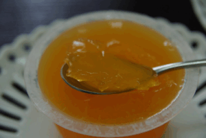 この「ジェーロ」というお菓子は、強力粉などと果汁などの液体を混ぜ合わせて鍋で加熱し、冷やし固めてゼリー状にするイタリア半島のシチリア地方のお菓子です。