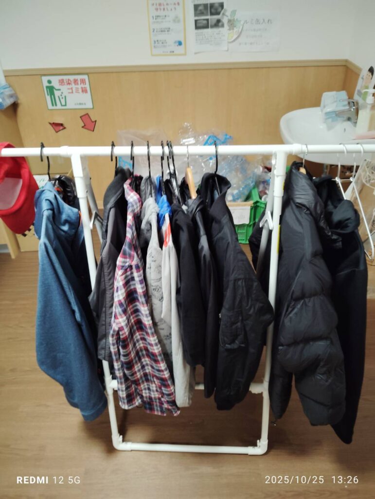 次の日10月25日この日はグループホームのイベントでスーパーバザーをやりました。今回は秋冬バージョンとして、秋冬に役立つ服や冬用ブーツ、雑貨などがラインナップされていました。会場はこんな感じでまさしくバザー感がありました。