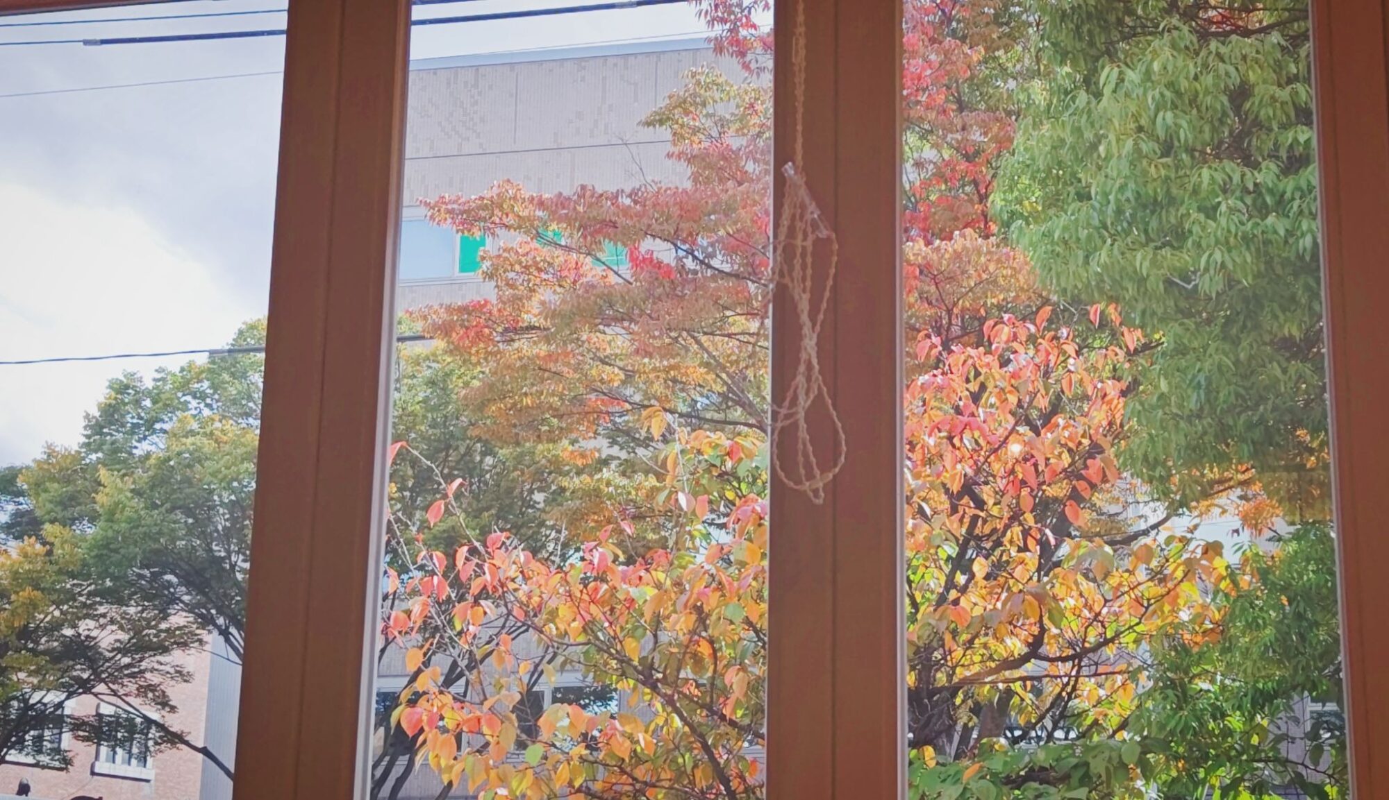 葉っぱの赤も少し広がっていて。はらはらと舞い落ちるのもあと少し──