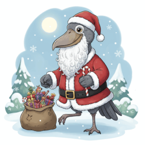 可愛いハシビロコウがサンタさんに一日限り仮装しているよ