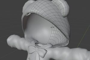 フード部分は、ギザギザがなめらかになるように点をGで移動して、調整していきます。手間を省くため左右対称にしたかったので、オートミラーを適用し、ミラーで半分だけ手を加えています。