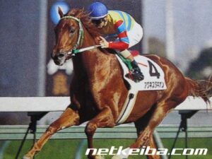 アグネスタキオンは、史実では1998年4月13日に牡馬(オス)として生まれ、2000年12月に競走馬としてデビューをしました。アグネスタキオンの特徴としては、戦績は4戦4勝の生涯無敗と怪我による早すぎる引退です。走ったレースはどれも圧倒的、三冠馬(※競走馬が3歳時に一度しか出られない三つの偉大なレースを勝った馬。牡馬限定の三冠で現在達成しているのは8頭)は確実といわれるほど実力は確かなものでした。しかし、一冠目の皐月賞を勝利しこのままの調子でというところで怪我が発覚し、関係者の協議の結果、引退が発表され、4戦4勝という結果を残しレースからは去っていきました。当時を知っているファンの方々からは、”怪我がなければ”という声がたくさんあり、”幻の三冠馬”とも評価される程の印象を焼き付けていきました。