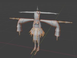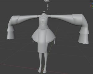 そのあと、ボーンを非表示にし、体に合うように衣装を変形させていきます。