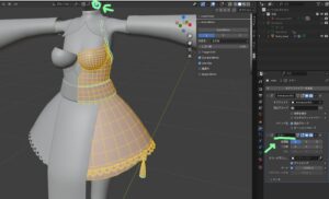 次に、服の細かい部分を合わせていきます。ミラーを使ったり、プロポーショナル編集を使うのがおすすめです。