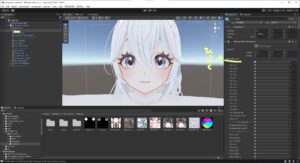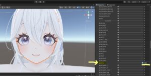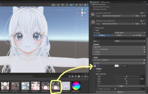 アバターによっては以前に紹介した、マテリアルのバーを動かして目の色を変えることができるのですが、このアバターの場合は目だけでなく顔全体の色が変わってしまいます。そんな時、目の色を変える方法がおおまかに2つ存在します。