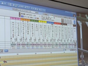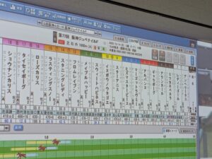 イヌボウノウタゴエってのが勝ったらおもしろいな、と思いつつレースを大画面で見守ります。