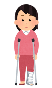 私は、リハビリをして、ひっしに松葉杖で、練習してがんばっていました。