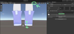 選択すると、シーンに白い境界が現れます。ここが地面の判定なので、動かして靴の真下に持っていきます。