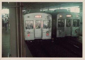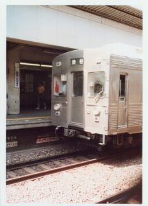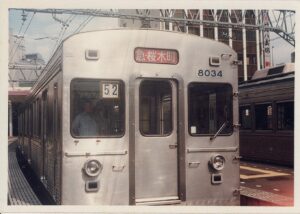 当時の電車の車両はステンレス製で8両編成。