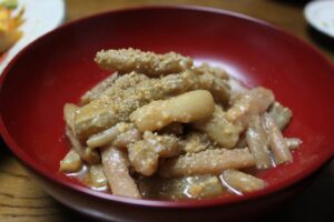 筆者の家の正月の雑煮には、「ずいき」と呼ばれる里芋の芋がらを干した物が入るのが慣例なのですが、今年はあちこちで不作だったようで、海外産の芋がらが入ることになりました。