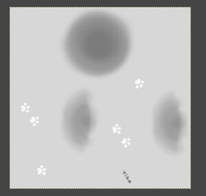 最初の段階ではマテリアルが入っていないので、GIMPを使いマウスで自らテクスチャを描いて、メインカラーに適用し、色が塗られている状態にしました。水色で、足跡の柄がついています。