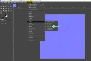 無料イラストソフトのGIMPを開き、メニューの、フィルター→汎用→法線マップを選択します。