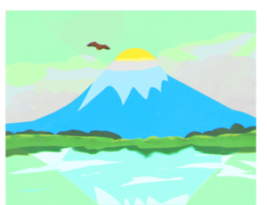 A.富士山の写真を見ていて、思いついたので描いてみようと思いました。