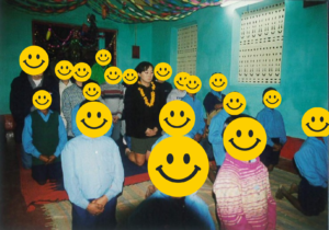 ボーイズホームに到着、子供達から歓迎を受ける。花で作った首飾りをかけてもらい、Jの奥さんに、額に印をつけてもらう。いやー感動した。、昼食を用意してくれて、とても美味しかった。インドへ来て食事が美味しく食べられるとは思わなった。子供達はとても元気で目がとても綺麗だった。子供達が世話をしているガチョウや、鶏もいてガチョウを追いかけたりしていて、とても楽しく飼育しているようだった。自分達がやらなければいけないことはきちんとしていた。感心した。その後、部屋に戻り簡単なオリエンテーション。お互い自己紹介をして子供達が踊りを披露してくれた。お返しに私達は、「カエルの合唱」とキラキラ星を歌い「アルプス一万尺」を教えて楽しんだ。そして礼拝があり、それに参加させてもらった。