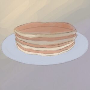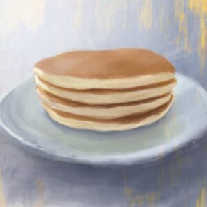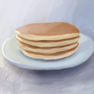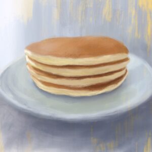 一枚一枚が薄く、もっと厚く大きいホットケーキのほうが描きやすいと思っていたのですが複数枚重なっていて