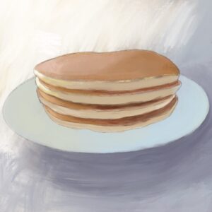 まずパンケーキを整えて皿の色味と影を描きました。