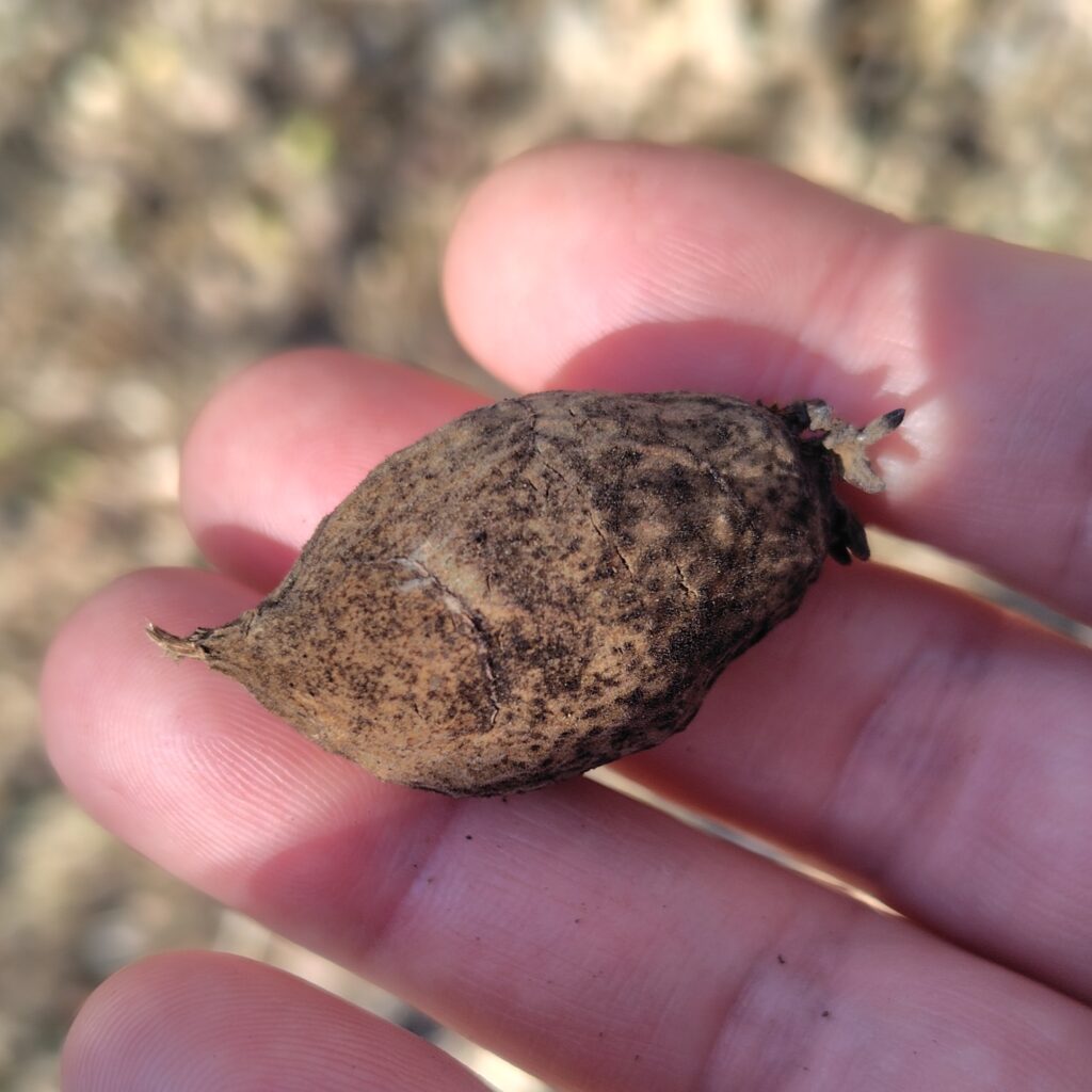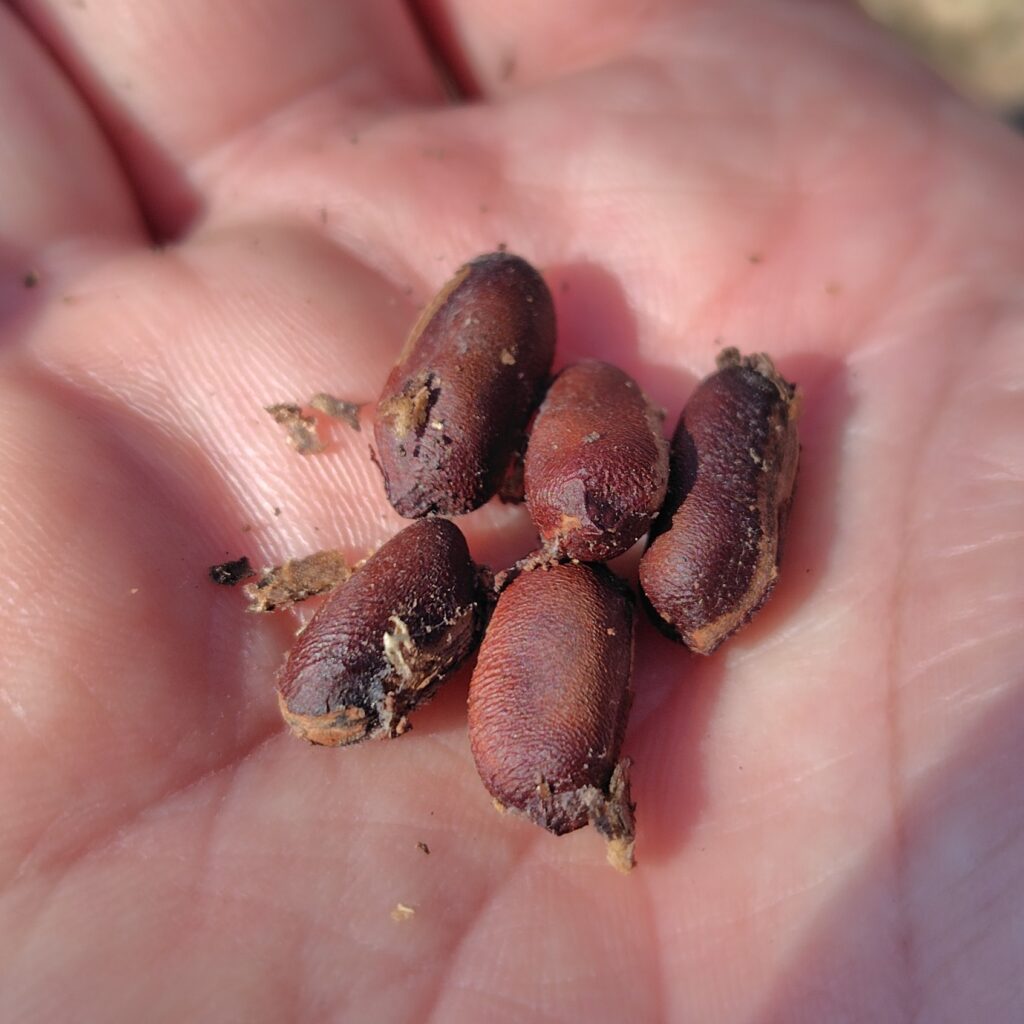 ちなみに、花に混じって一緒に黒い粒がたくさん成っているのは「種の房」です。