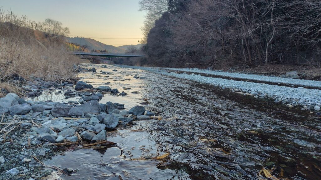 時間まで、近くの川沿いを散策しました。