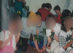 幼少の頃に、誰もが笹船位は作った経験があるだろうが、まさか笹で魚を作る事が出来るとは。タイ人は器用な人が多いのだろうか?試行錯誤の上、思い思いの魚が作れて大満足。タイのリーダーと子供達が親切に教えてくれた。