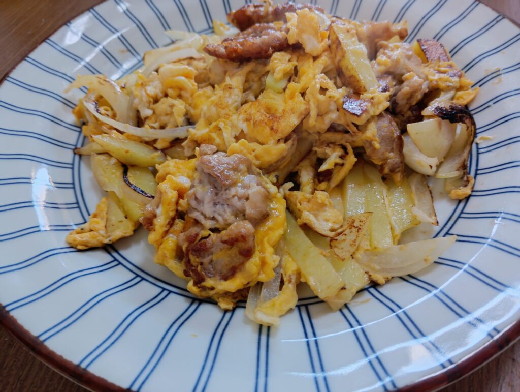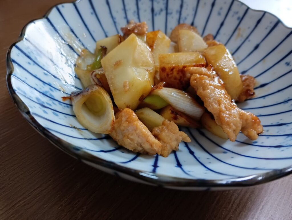 鶏ひき肉とじゃがいもとねぎの炒め物
