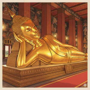 バンコク最古にしてタイ最大の寺院。「リクライニング・ブッタ」の愛称で親しまれている巨大な寝釈迦像がこの寺院の見どころです。長さ46m、高さ15m、の仏像は金色に輝きながらお堂のほとんどのスペースを占めています。