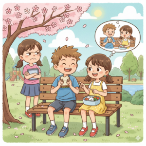 6.小学校5年生の時です。出かけていた私の妹が、「〇〇、公園で女の子とお弁当食べてたよ」と言うので帰って来てから息子に聞きました。(この日、学校の行事で学校に行っていてお弁当を配られていました。保育園から一緒で、よく家にも遊びに来ていた女の子がいたのでその子かなと思ったら、別の子だったけど、息子が言った一言に唖然でした。「○○(そのなかのいい女の子)には絶対に言わないでね。」まるで浮気を隠す大人のようでした。思わず苦笑した私と妹でした。
