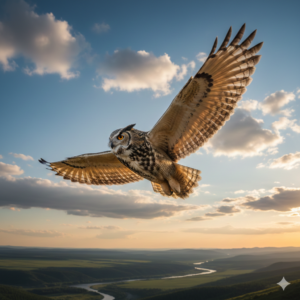 *大空を優雅に飛び交う ふくろうは 愛らしい姿で 空を舞う