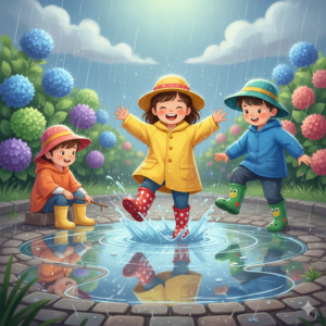 *水たまり はしゃぐ元気な子供達 そんな姿に勇気をもらう