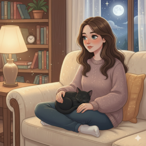 *膝の上 ジジのような可愛い子 丸くて黒い私の子猫