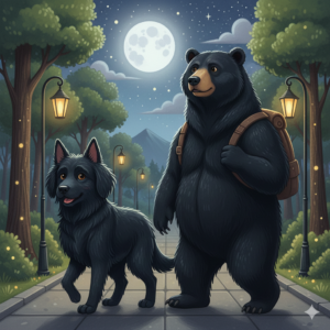 *目線の先 もこもこ歩く黒いかたまり 犬かと思いきや くまだった