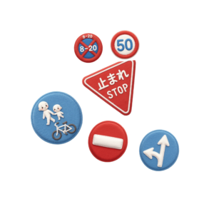 ・「黄色信号・歩行者信号の点滅」→進んではいけない(急ブレーキになりそうな時など、進んだ方が安全な場合は例外)
