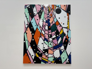 事務用品のクリップから着想を得た作品(写真1)や、コロナ禍に蜘蛛の巣を見てインスピレーションを受け作成した作品(写真2)は、水色や柔らかなオレンジ、ピンク色などの配色が好みで、かわいいなぁと感じました。