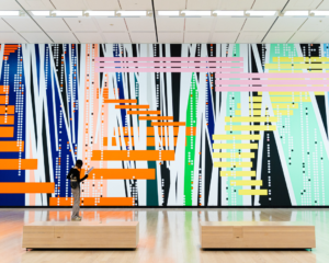 他には、映像作品や、壁一面に展開した巨大な幾何学模様の作品(写真3)などもあり、見応えもばっちりでした。