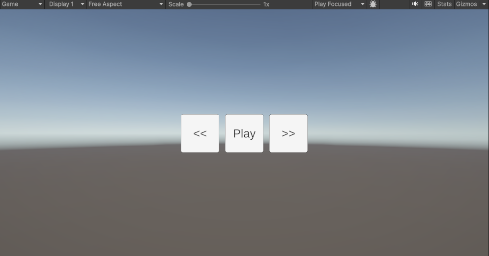 これでOK。ゲーム再生ボタンをクリックして、Playボタンで再生・一時停止、>>ボタンと<<ボタンで曲送りができるようになっています。