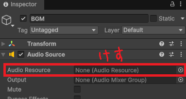Audio Source内のAudio Resourceに曲が入ったままになっているので消します。