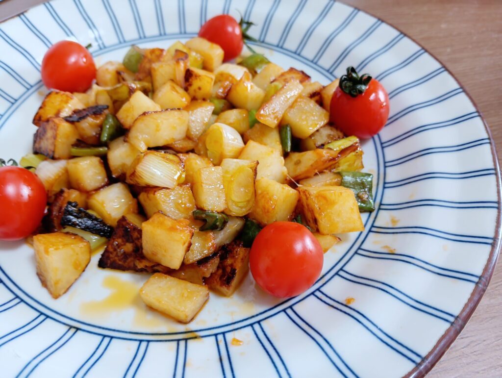 ネギとじゃがいものケチャップ炒め