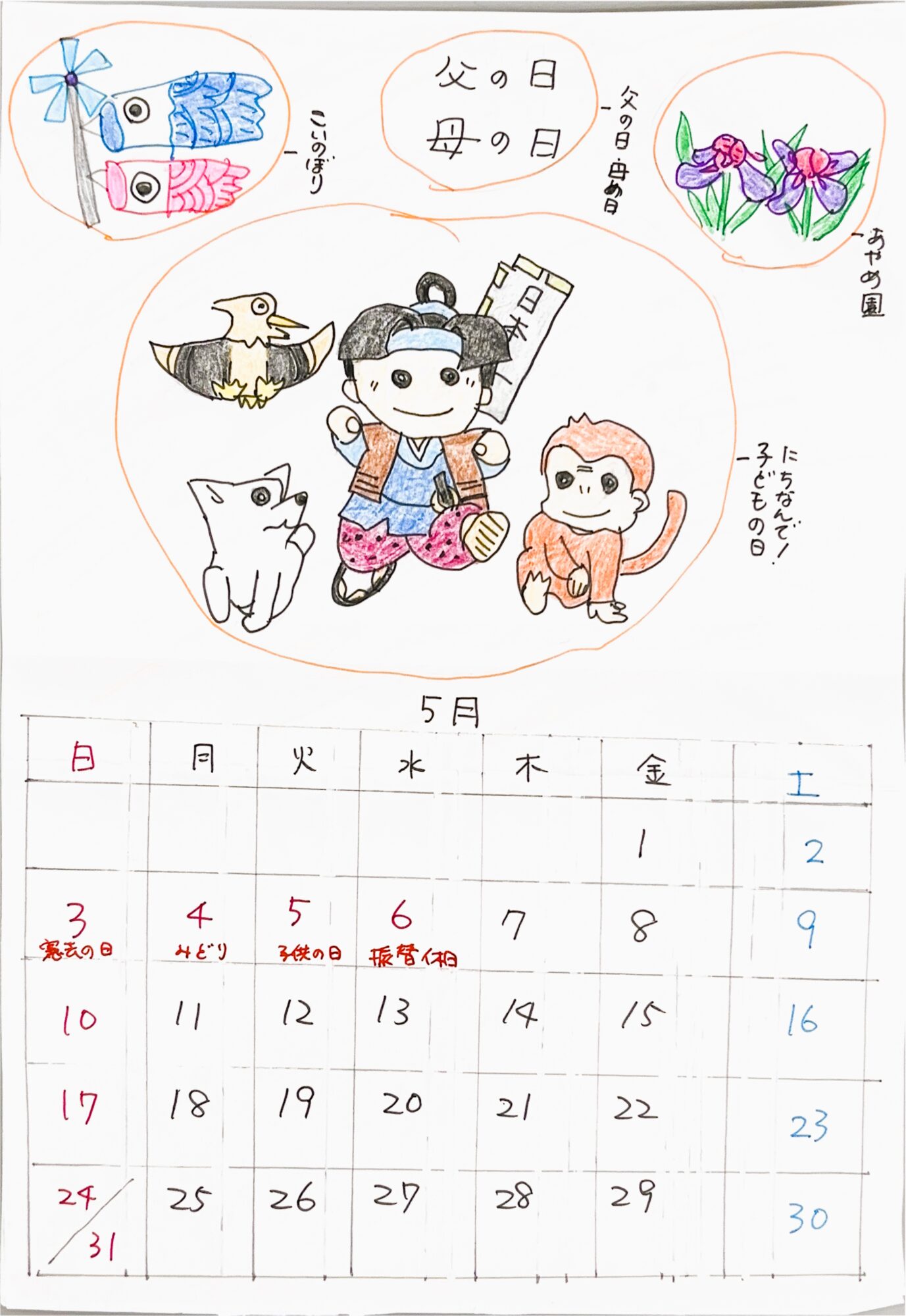 5月イベントは、ゴールデンウイーク・5日こどもの日、母の日第二日曜日です。