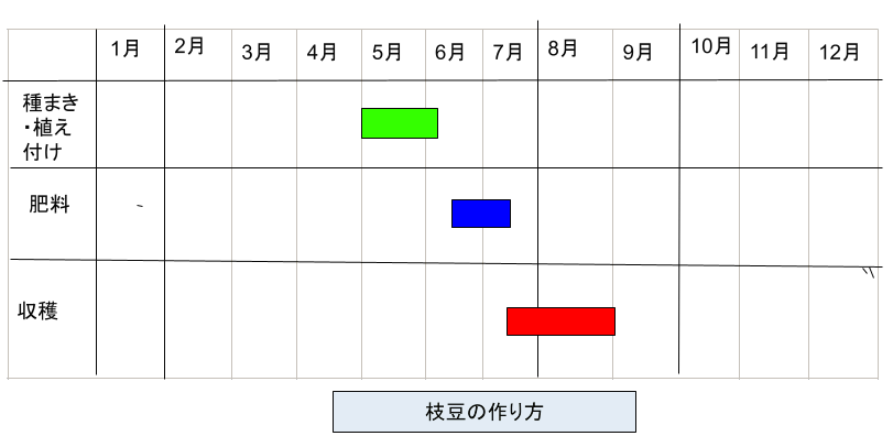 - 追肥 えだまめは収穫まで元肥だけで栽培するのが基本だが、苗が貧弱な場合は追肥を行う。
