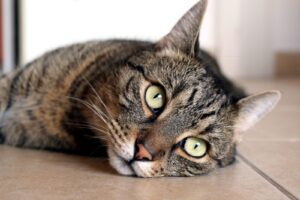寝そべっている猫の画像