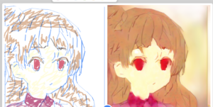 線がぐにゃぐにゃ動いて美少女らしきものが急に生成された。よくわからない線からこんなにも変化するとは。