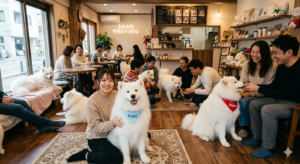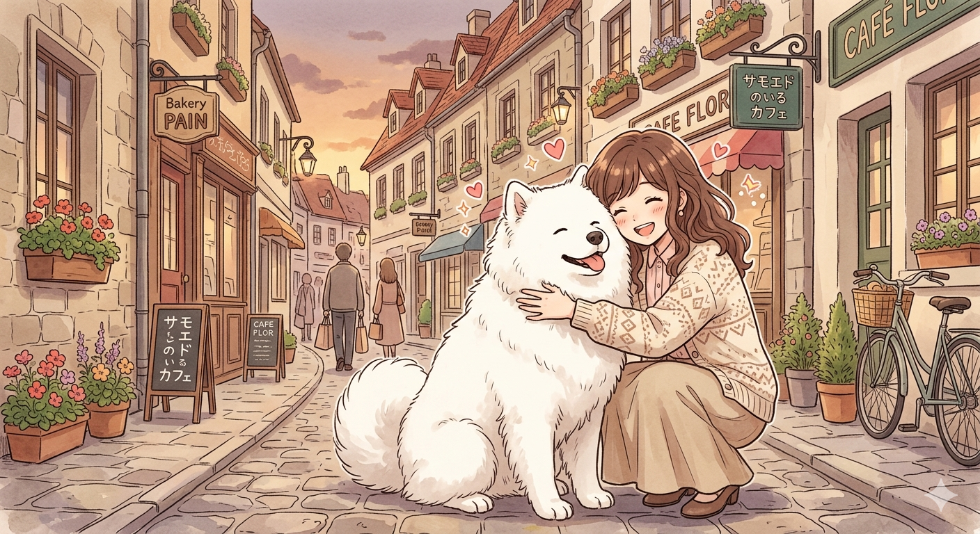⑤最後は今とても行ってみたい所があります。仙台の街を歩いていた時の事、まっ白でふわふわな犬がいました。とても可愛くて、なでさせてもらいました。飼い主らしい人に聞いたら、サモエドというわんちゃんで一番町にあるサモエドカフェのわんちゃんでした。機会があれば是非行ってみたいと思います。気になる方は是非どうぞ。本当に可愛いです。