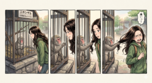 ④町に買い物に行った時の事、何処かのお店の前に檻に入った二ホンザルがいました。猿好きの私は、思わずかわいーとそばに行きました。髪の長い私は髪が檻に触れると、猿が私の髪をつかみました。中々離してくれず、痛かったのをお覚えています。店の人があわててきて、離してくれました。
