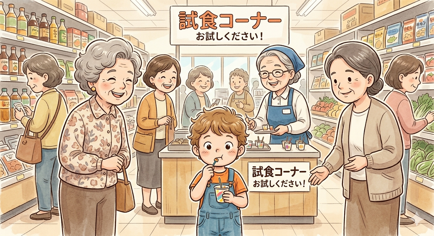 ②又お店休みの日、息子と買物に行きました。お肉売り場に行くと、味付けの肉を焼いたのが試食で出ていました。息子が食べたいと言うのでいいよと言いました。そして食べ始めましたが、相当美味しかったらしく、大きな声で「美味しい、これおいしいと言いました。すると人がたくさん集まってきました。「僕美味しいの?と聞かれ、「うん、美味しい、お母さんこれ買って」と言われかごに入れました。他のお客様もかごに入れていました。