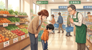 ①息子が2才位の時、近所のスーパーに買い物に行きました。私の勤め先でもあり、よく行くスーパーでした。