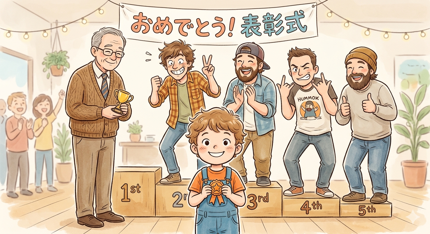 職場でも人気のあった息子は、可愛がられました。そんな中で5位位まで順位をつけていた息子です。1位になった人は、特に何か話すわけでもなく、会えば頭をなでてくれたり、にこにこと息子を見ているだけの人でした。他にも一緒に遊んでくれる人もいました。でも何故か、にこにこしているだけのその人が1位だったようです。子供の感覚って不思議ですね。そんなある時、何かで集まっている時、その人に「僕のお父さんになって」と言った時は焦って思わず「待ってー」と息子の口を押えた私です