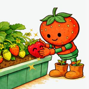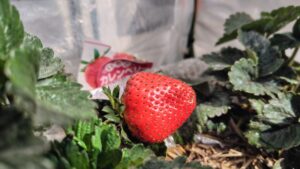 いちごの実は、日光を浴びることによって「赤く」なるらしいのです。