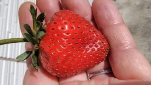 第2号、3号の「よつぼし」と「蜜香」は生育は十分ではありませんでしたが、鼻を近づけると、いちごのあまーい良い香りがして、酸味も少なくて、かなり甘い仕上がりになっていました。